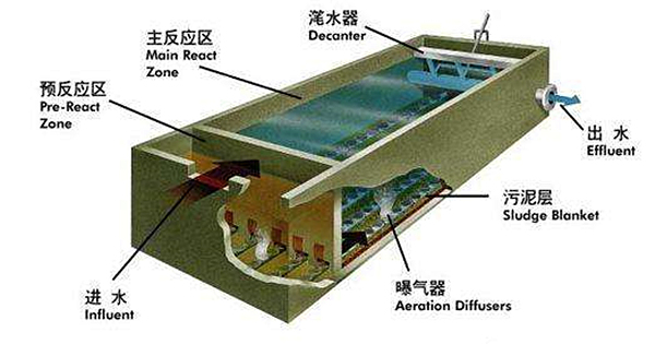 SBR是序批式活性污泥法的簡稱,又稱間歇式活性污泥法,是一種按間歇曝氣方式來運行的活性污泥污水處理技術。SBR技術的核心是SBR反應池,該池集均化、初沉、生物降解、二沉等功能于一池,無污泥回流系統。一共有流入、反應、沉淀、排放和閑置五個工序,比較適用于間歇排放和流量變化較大的場合。